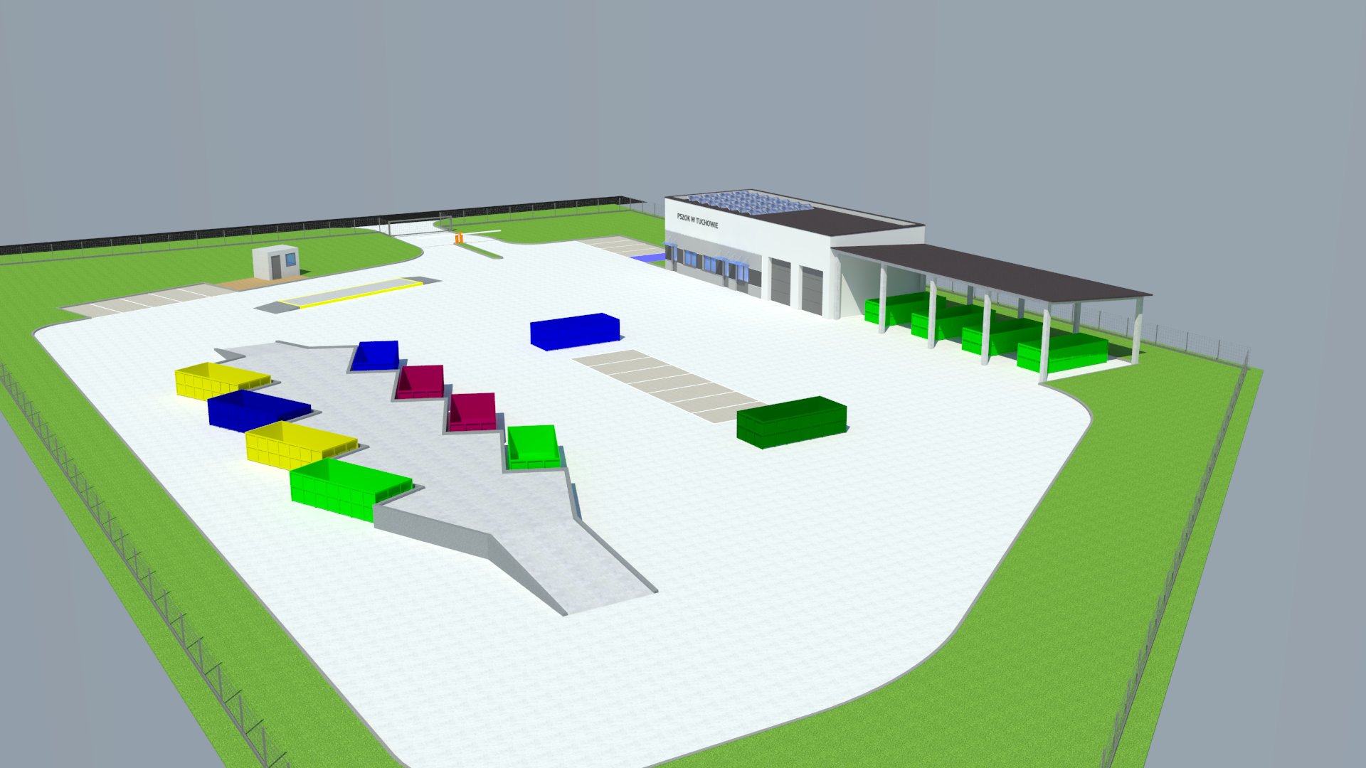 Projekt obejmuje kompleksową budowę nowoczesnego PSZOK w Tuchowie. W jego ramach powstaną m.in.: budynek usługowo-gospodarczo-garażowy z pełnym wyposażeniem instalacyjnym, wiata magazynowa, budynek obsługi wagi oraz waga samochodowa najazdowa. Zakres inwestycji obejmuje także budowę muru oporowego, wykonanie utwardzonych powierzchni i miejsc postojowych, a także realizację zewnętrznych instalacji technicznych, ogrodzenia z bramą i szlabanami.