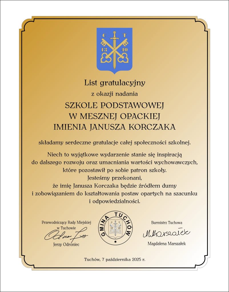 Nadanie imienia Janusza Korczaka – pedagoga, lekarza i przyjaciela dzieci – to ważny moment w historii tej szkoły. Patron, który zawsze stawiał dobro dziecka na pierwszym miejscu, przypomina nam, że szkoła to nie tylko miejsce nauki, ale także przestrzeń szacunku, empatii i odpowiedzialności. W duchu jego wartości rozpoczynamy nowy rok szkolny, pełni zapału do pracy i wiary w siłę wychowania opartego na miłości i dialogu.